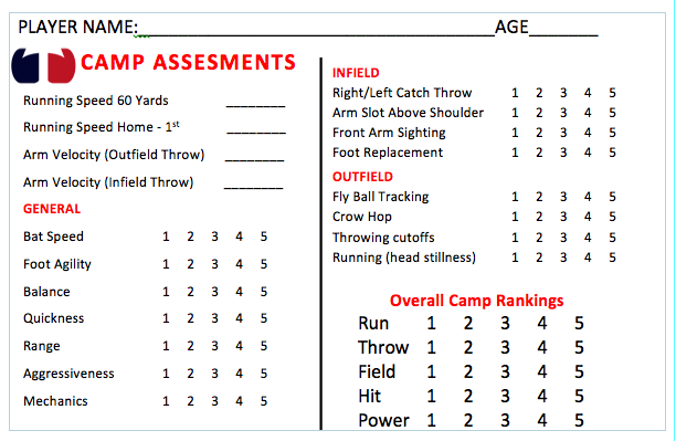 ·Evaluation Camps are designed to Evaluate players on their current level of play. Players will be assessed on the following skils and receive an assesment card.